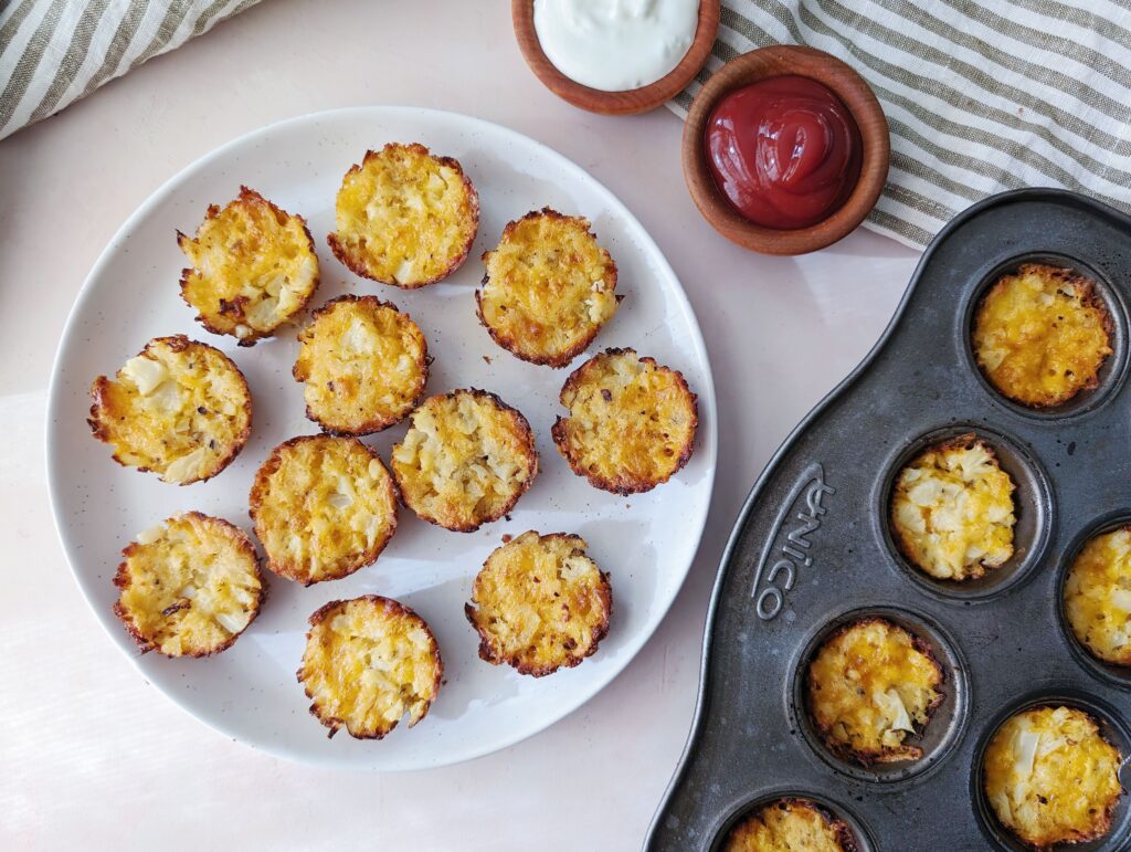 Baking cauliflower tots in a 12-cup muffin tin couldn’t be more simple. Think “tater-tots” only a lot more nutritious! These cauli-tots are a good option for baby-led weaning with cauliflower, or a toddler-friendly snack idea. Best of all, these bite-size vegetable tots take just 30 minutes to make.